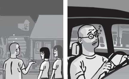 | Both Deena and I had left our cars at Brad's place. As casually as I could, I asked Deena if Kim lived closer to her or me. Of course, we determined Deena was closer. It was just as well. I shouldn't have been driving. I fell asleep at a stop sign, and barely made it home. |